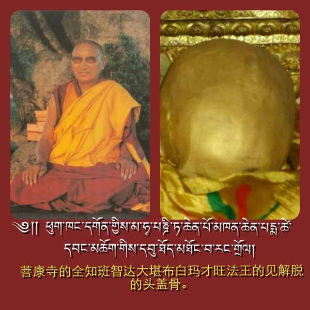 2002年3月8日,法王于桑耶寺圆寂后,身体缩至一肘高,荼毗后自然显现双身时轮金刚相,并留下头盖骨,凡亲见到此金刚双身法体的众生都可往生东方香巴拉净土,实为众生之殊胜福田。