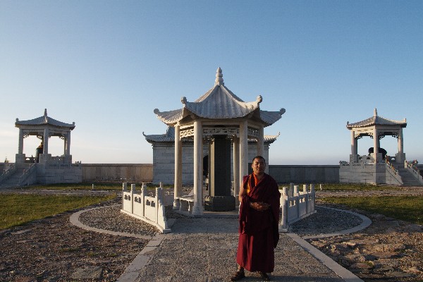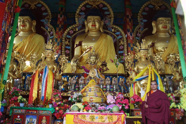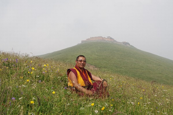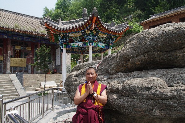 菩康法王徒步转山朝台第四日,于东台卧佛殿前