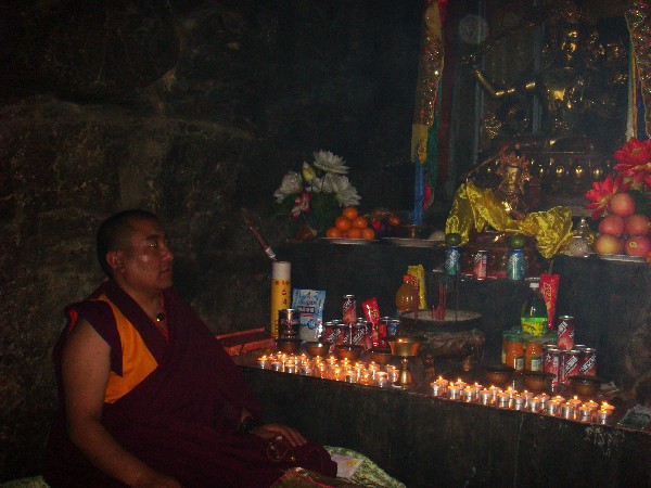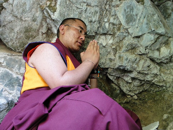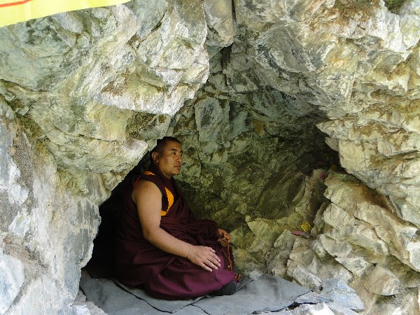 菩康法王于文殊洞后山显现文殊菩萨手印的修行洞中打坐静修