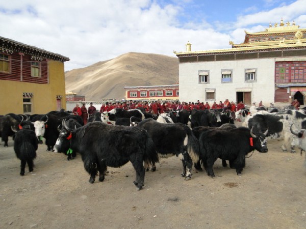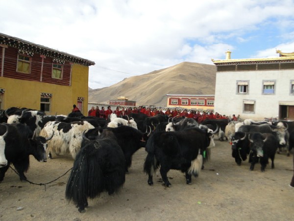 2010年11月16日,在菩康法王和寺中僧众的慈悲加持下,近百头牦牛被放生。法王特意安排专人饲养照料这些被放生的牦牛,使它们得以安度此生。
